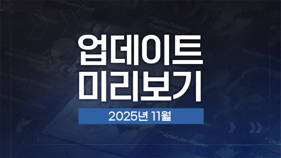 안녕하세요, 사장님.카운터사이드 라이브 PD 김현수입니다.언제나 카운터사이드를 아껴주시고 함께해 주시는 사장님들께 진심으로 감사드립니다.사장님들께 새로운 즐거움을 전해드리기 위해 준비한 11월 업데이트 소식을 전해드리겠습니다.[전조 – ???]11월은 예정된 전조 3 에피소드로 시작될 예정입니다.캄파멘토와 로터스에 이어 새로운 지역에서 펼쳐지는 전조 3 에피소드에 많은 기대 부탁드립니다.아울러, 전조 에피소드는 3주 간격으로 업데이트할 것을 약속드렸으나, 전조 4 에피소드 준비에 시간이 필요하게 되었습니다.이에 전조 4 에피소드는 12월 중 업데이트될 예정인 점 양해 부탁드립니다.사장님들께 약속한 기한을 지키지 못한 점 진심으로 사과드립니다.전조의 ■ 번째 에■■드는 챔버 - ■■■■입■다.모종의 ■■로, ■■에 닥칠 ■■를 미리 ■■ 된 ■■■. 과거 ■■가 내린 선택이 「전조」가 닥친 지금의 영향을 ■■■ 시■합니다.■■■■에서는 챔버를 위해, ■■■의 뜻을 잇는 ■■■, 세계의 안위를 위해 ■■■에 협조하는 ■■■■. 그리고 그간 베일에 감춰진 ■■■■■ 프로젝트의 내■에 관한 이■기가 ■■됩니다.흩어져있던모든안배가돌고돌아다시금제위치를되찾을때뒤틀린불협화음은하나의행진곡이되어대균열에모인모든이의운명을연주하기시작한다[신규 각성 사원 – 얄다바오트의 자녀들 호수의 기사]그동안 격전지원 보스로 사장님들을 상대해왔던 호수의 기사가 각성 사원으로 출시됩니다.호수의 기사는 오랜만에 출시되는 카운터/침식체 타입의 사원으로, 전천후 공격이 가능한 레인저 사원으로 준비 중에 있습니다.호수의 기사는 적의 회복을 강탈하여 상대의 유지력을 억제하고, 적이 사망할 때마다 강화 공격을 시전하여 강력한 피해를 줌과 동시에 특정 군중제어 효과를 부여합니다.또, 궁극기를 시전하면 다음 궁극기가 강화되어 더 위력적인 효과를 발휘할 수 있습니다.각성 사원으로 돌아오는 호수의 기사에 많은 기대와 관심 부탁드립니다.◆ 얄다바오트의 자녀들 호수의 기사[신규 카운터 패스 사원 – 아셀라 프로체니카]새로운 매력을 보여준 트레저★헌터 미리네에 이어 아셀라 프로체니카가 카운터 패스 사원으로 찾아옵니다.아셀라는 퓨리 속성을 가진 카운터 타입 디펜더 사원으로, 전천후 공격이 가능한 지상 이동 타입의 사원입니다.디펜더임에도 후열에 위치한 적에게 표식을 부여하고, 특수기 사용 시마다 표식이 부여된 대상을 원격으로 타격하는 특징을 보유하고 있습니다.◆ 아셀라 프로체니카[신규 오퍼레이터 - 나탈리아]11월에는 신규 오퍼레이터 나탈리아도 출시됩니다.나탈리아는 레인저와 스나이퍼 사원의 공격 능력을 강화하여 화력을 순간적으로 증가시킬 수 있습니다.뿐만 아니라, 바바야가를 소환하여 공격을 보조하는 역할까지 수행할 수 있는 오퍼레이터입니다.◆ 나탈리아[신규 콘텐츠 - 대탐사]하프 애니버서리를 통해 소개해 드렸던 신규 콘텐츠, 대탐사가 11월 출시됩니다.대탐사는 정해진 기간동안 진행되며, 이벤트에서 제공되는 사원과 함선 등을 활용하여 탐사를 진행할 수 있는 콘텐츠입니다.탐사 중 다양한 사원과 아티팩트 등을 획득하게 되고, 획득한 것들을 토대로 앞으로 나아갈 수 있습니다.대탐사에서는 다른 콘텐츠와 달리 시인성을 강화하고 적절한 난이도를 위해 4명의 소대원만 사용할 수 있으며, 사장님들께서 새로운 콘텐츠를 위해 주신 의견을 반영하여 중복 편성도 가능하도록 하였습니다.또한, 탐사를 하시면서 사원을 업그레이드하거나, 보유한 함선을 한단계 높은 희귀도의 함선으로도 업그레이드할 수 있으며, 클리어한 스테이지에 따라 강화 포인트를 획득하고, 획득한 강화 포인트를 사용하여 사원들을 강화할 수 있습니다.새로운 콘텐츠에 많은 기대를 부탁드리며, 더 자세한 사항은 패치노트를 통해 안내해 드릴 예정이니 참고 부탁드립니다.[신규 프레스티지 서비스]현재 진행 중인 흑조의 서약 프레스티지 서비스가 11월 19일 종료되고 새로운 프레스티지 서비스가 시작될 예정입니다.새로운 프레스티지 서비스의 스킨 대상은 파이널 페이즈 시그마로, 사장님들의 귀여운 딸 노릇을 하던 시그마의 새로운 모습을 준비하고자 했습니다.다만 스킨 제작 일정에 지연이 발생하여, 이번 프레스티지 시작 일자에 스킨 공개가 어렵게 되었습니다.이에 다음 프레스티지 서비스는 특정한 사원의 스킨만 획득할 수 있는 기존 방식이 아닌, 과거의 프레스티지 스킨 중 원하는 스킨을 직접 선택하실 수 있는 형식으로 준비하고 있습니다.만약, 이전의 프레스티지 스킨을 모두 획득하셨거나 시그마의 스킨 획득을 원하시는 경우에는 파이널 페이즈 시그마의 프레스티지 스킨이 업데이트된 이후 시그마의 스킨을 선택하실 수 있도록 할 예정입니다.호라이즌에 이어 시그마 스킨 제작 일정으로 심려를 끼친 점 진심으로 사과드리며, 시그마의 프레스티지 스킨 [태엽 감는 소녀 - 파이널 페이즈 시그마] 스킨은 12월 17일 출시 예정이니 참고해 주시기 바랍니다.◆ 태엽 감는 소녀 - 파이널 페이즈 시그마끝으로, 사