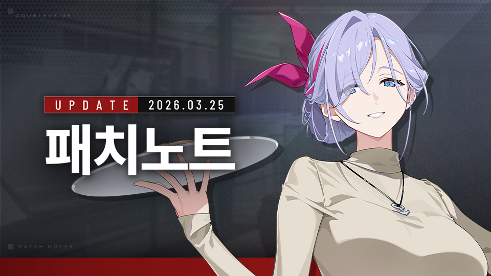 ◈ 점검내역▣ 시간: 2026.3.25(수) 10:00 ~ 12:00(11:30 종료)▣ 영향: 점검 시간 중 게임 접속 불가▣ 점검보상: 2만 크레딧, 채용 계약서 3개* 게임 운영정책을 위반한 사장님에게는 관리국에서 보상을 지급하지 않습니다.▣ 꼭 읽어주세요!- 업데이트 중 패치노트 내용이 추가/변경될 수 있습니다.- 점검 상황에 따라 일정이 변경될 수 있습니다.- 점검보상은 2026.3.27(금) 23:59까지 접속 시 우편함으로 지급됩니다.◈ 상점내역이번 주 상점 업데이트 내용은 아래 상점안내 공지에서 확인하실 수 있으니 잊지 말고 확인해 주시기 바랍니다. ▷ [3/25(수) 상점안내] 바로가기1. 신규 오퍼레이터1) 신규 오퍼레이터 [메리 크루]이 추가됩니다.2) [상점 – 교환소 – 플래닛몰]에 오퍼레이터 메리 크루 즉시 채용 상품이 추가됩니다.◈ 메리 크루* 불굴의 마음: 4회 피격 시 해제되는 철벽 상태 부여, 철벽 상태가 지속되는 동안 특수기 이하 경직 면역* 자애의 마음: 유효타격 흡수+200%, 궁극기 이하 경직 면역 상태 부여[일러스트]◈ 오퍼레이터 메리 크루 채용 확률 UP◆ 진행 기간- 2026.3.25(수) 점검 후 ~ 2026.4.8(수) 10:002. 건틀렛▣ 랭크전1) 2026 로얄 시즌이 종료됩니다.▷ 종료 일시: 2026.3.29(일) 22:00▷ 결산 기간: 2026.3.29(일) 22:00 ~ 2026.3.30(월) 4:00※ 2026 로얄 시즌의 스킨 보상은 [체포합니다 휴먼 - 콜드 케이스 호라이즌]입니다.※ 동일한 건틀렛 한정 스킨을 소유하고 있는 경우 [프레임 : 체포 완료]가 지급됩니다.2) 2026 디보션 시즌이 시작됩니다.※ 신규 건틀렛 스킨은 4/1(수) 업데이트를 통해 추가될 예정입니다.◆ 진행 기간- 2026.3.30(월) 4:00 ~ 2026.6.28(일) 22:00까지3) 랭크전 밴 규칙이 변경됩니다.- 1주차에 밴 대상 유닛이 선정되지 않습니다.- 2주차부터 매주 3명씩 밴 대상 유닛이 선정됩니다.- 밴 대상으로 선정된 유닛은 시즌이 종료될 때까지 편성할 수 없습니다.- 밴 대상은 최다 승리 사원 2명과 캐스팅 밴 투표 1위 1명이 선정됩니다.- 최다 승리 사원과 캐스팅 밴 1위 사원이 동일한 경우 캐스팅 밴 2위 사원이 밴 대상으로 선정됩니다.- 함선 밴 규칙은 변경되지 않습니다.3. 레이드 : 크라켄 시즌1) 레이드 보스 [크라켄]이 등장합니다.- 레이드 보스 [크라켄]이 시즌 기간 동안 등장합니다.◆ 진행 기간- 2026.3.25(수) 점검 후 ~ 2026.4.8(수) 10:00※ [크라켄] 시즌 로테이션과 함께 공로패 교환소 보상이 갱신됩니다.※ 현재 시즌에 생성된 레이드 보스에서만 레이드 포인트가 지급되며, 다른 시즌에 생성된 레이드 보스 처치 시 처치 보상만 획득이 가능합니다.※ 레이드 보스 [크라켄]에게는 근원성 [안정]만 적용됩니다.4. 챌린지 모드 복각: 그레모리 바 전용 장비 챌린지 [그레모리 고민 상담]1) 그레모리 바 전용 장비 챌린지 모드 [그레모리 고민 상담]이 복각됩니다.◆ 진행 기간- 2026.3.25(수) 점검 후 ~ 2026.4.1(수) 10:00까지◆ 던전 구성- ACT.1-2 스테이지로 구성되어 있습니다.- 스테이지는 2개의 스테이지가 하나의 구간으로 구성되며, 각기 다른 전투 컨셉을 가집니다.- 챌린지 모드에서는 [그레모리 바] 전용 버프가 추가되어, 배치한 내 그레모리 바 유닛의 능력치가 상승합니다.◆ 보상 안내- 챌린지 모드를 클리어하고 [그레모리 바] 커스텀 금형 제작 시 사용되는 재료 [욕망의 맺음]을 획득하세요!※ 챌린지에서 승리했을 때만 획득이 가능합니다.- 챌린지 모드 스테이지 클리어 시 [최초 클리어 보상]과 [메달 완수 보상(3메달 달성 보상)]을 획득할 수 있으며, 챌린지 반복 보상으로 [욕망의 맺음]을 획득할 수 있습니다.- 챌린지 모드 승리 시 획득하는 [욕망의 맺음] 아이템을 통해 [그레모리 바] 금형을 제작할 수 있습니다.※ 챌린지 스테이지 보상- 최초 클리어 보상: 욕망의 맺음- 메달 완수 보상: 쿼츠- 반복 보상(스테이지 드랍): 욕망의 맺음◆ 전용 장비- [공방] > [제작 시설] > [전용장비] 탭에서 제작이 가능합니다.- [그레모리 바]의 전용장비 제작 금형 아이콘을 클릭하면 리스트를 확인할 수 있습니다.- [그레모리 바] 커스텀 금형 제작을 위해서는 [욕망의 맺음], [고급 장비 소재], [크레딧]이 필요합니다.- 제작 방법은 기존 금형과 동일하며, 즉시 제작됩니다.- 제작 가능한 전용장비 리스트는 아래와 같습니다.- 챌린지 스테이지 클리어 시 낮은 확률로 그레모리 바 전용 장비 완제품을 획득할 수 있습니다.- 그레모리 바 전용 장비 해체 시 [욕망의 맺음] 50개를 획득할 수 있습니다.※ 금형 제작 및 클리어 시 획득하는 전용 장비는 카운터케이스로 획득하는 전용 장비와 동일합니다.5. 출근체크 : 김하나의 특별 보너스1) [김하나의 특별 보너스] 출근체크가 진행됩니다.◆ 진행 기간- 2026.3.25(수) 점검 후 ~ 2026.4.8(수) 10:00※ 이벤트 기간 동안 총 7일 분량의 출근체크에 참여할 수 있습니다.※ 출근 체크는 매일 오전 4시에 갱신됩니다.※ 반드시 연속해서 출근할 필요는 없으며 기간 중 일자 횟수만큼 출근하면 모든 보상을 받을 수 있습니다.[보상 목록]6. 채용1) 기밀채용 4종이 복각됩니다.- 기간: 2026.3.25(수) 점검 후 ~ 2026.4.8(수) 10:00- 확정 채용 횟수: 150회- 확정 채용 횟수 중 반드시 확정 채용 사원 1명이 등장합니다.- 확정 채용 사원을 획득하면 확정 채