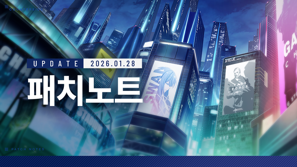 ◈ 점검내역▣ 시간: 2026.1.28(수) 9:00 ~ 11:30▣ 영향: 점검 시간 중 게임 접속 불가▣ 점검보상: 2만 크레딧, 채용 계약서 3개* 게임 운영정책을 위반한 사장님에게는 관리국에서 보상을 지급하지 않습니다.▣ 꼭 읽어주세요!- 업데이트 중 패치노트 내용이 추가/변경될 수 있습니다.- 점검 상황에 따라 일정이 변경될 수 있습니다.- 점검보상은 2026.1.30(금) 23:59까지 접속 시 우편함으로 지급됩니다.- 점검 시작 시간 변경으로 인해 2026.1.28(수) 10:00에 종료되는 콘텐츠의 종료 시간이 9:00로 변경됩니다.[변경되는 콘텐츠]- 기밀 채용: 미니스트라, 위대한 정적 에클레시아, 마에스트로 네퀴티아- 일반 채용: 루미, 골리앗, 모르스- 레이드: 브리트라 시즌- 이벤트: 라스트 스탠드 시즌 19 결산 기간- 이벤트: 챔피언십 시즌 4 진행 기간- 아카데미 총학생회 전용 장비 챌린지: [아카데미 총학생회 특강]- 출근체크 : 아나스타샤의 특별 보급- 카운터패스: 히페리온 플랜 타이탄- 상점: 2026 겨울맞이 전투지원 패키지, 2026 겨울맞이 스페셜 융합핵 패키지, 2026 겨울맞이 종합 바이너리 패키지, 2026 겨울맞이 렐릭 바이너리 패키지, 2026 겨울맞이 함선강화 패키지, 2026 겨울맞이 기밀채용 패키지, 매일 채용 패키지, 종합 바이너리 특별 패키지◈ 상점내역이번 주 상점 업데이트 내용은 아래 상점안내 공지에서 확인하실 수 있으니 잊지 말고 확인해 주시기 바랍니다. ▷ [1/28(수) 상점안내] 바로가기1. 신규 서브스트림 : 전조 5 - 라 트라비아타1) 신규 서브스트림 에피소드 [전조 5 - 라 트라비아타]가 추가됩니다.2. 신규 사원1) 신규 사원 [닥터 메이시]가 추가됩니다.◈ 닥터 메이시[일러스트][스킬컷인][SD 캐릭터][작전 중 캐릭터]◈ 카운터 패스 : 닥터 메이시◆ 진행 기간- 2026.1.28(수) 점검 후 ~ 2026.3.4(수) 10:00◆ 진행 방법1) 패스 미션을 완료해 패스 레벨을 올리고 레벨에 따른 유닛 성장에 필요한 보상들을 획득하세요!2) 카운터패스 미션은 [일일 미션] [주간 미션]으로 나뉩니다.3) 일일 패스 미션은 매일 10종의 미션이 리스트업 되며, 그 중 6개의 미션을 클리어 하실 수 있습니다.- 원하지 않는 미션들은 리롤 버튼을 눌러 다른 미션으로 갱신이 가능합니다.- 갱신은 미션 당 3회까지 무료로 가능하며, 이후 최대 5회까지 일정량의 크레딧을 사용하여 갱신할 수 있습니다.- 일일 패스 미션 달성도를 모두 달성하면, 추가 보상(패스 경험치)을 획득할 수 있습니다.4) 주간 패스 미션은 매주 월요일 오전 4시를 기준으로 10종의 미션이 리스트업 됩니다.- 일일 패스 미션과 달리, 해당 미션들은 모두 동일하게 리스트 업 됩니다.- 주간 패스 미션 달성도를 모두 달성하면, 추가 보상(패스 경험치)을 획득할 수 있습니다.5) 2주차, 4주차의 일일/주간 미션에서는 기존 대비 2배의 패스 경험치를 획득할 수 있습니다. (달성도는 미포함)3. 대탐사 시즌 11) [대탐사 시즌 1]이 진행됩니다.◆ 진행 기간- 2026.1.28(수) 점검 후 ~ 2026.2.11(수) 10:00◆ 진행 설명- 이벤트 기간동안만 플레이가 가능하며, 기간이 종료되면 초기화가 됩니다.- 보유한 소대를 사용하는 것이 아닌 초기 편성부터 탐사 중 획득한 소대를 활용하여 탐사를 진행할 수 있습니다.- 스테이지마다 획득할 수 있는 보상 타입 및 구성되어 있는 적군의 클래스 등 확인이 가능합니다.- 탐사 성공 혹은 실패하게되면 탐사 중 획득한 소대원 혹은 아티팩트 등은 초기화가 됩니다.- 탐사 도중 실패 혹은 모두 완료하게될 경우 구역에 따라 강화 포인트를 획득할 수 있습니다.- 획득한 강화 포인트를 사용하여 시즌 강화를 진행할 수 있으며, 강화된 능력치는 초기화를 할 수 있습니다.- 탐사 중에는 시즌 강화 업그레이드 및 초기화가 불가능 합니다.- 이벤트 기간동안 최초로 클리어한 단계에 따라 보상 점수를 획득할 수 있습니다.- 획득한 보상 점수로 보상을 획득할 수 있습니다.- 해당 이벤트에서는 특정 사원만 등장하게 됩니다. ◆ 시즌 개선사항- 시즌 내 등장하는 사원 리스트 표시 기능이 추가됩니다.- 전투 섹터 우측 팝업을 통해 전투 환경의 정보가 표기되도록 개선됩니다.- 보상 선택지에서 리롤 기능과 보상 팝업 숨기기 기능이 추가됩니다.- 탐사 중 획득한 사원에게 보유 중인 스킨이 적용됩니다.- 각 구역의 스테이지 단계가 15단계로 확장됩니다.- 아티팩트의 희귀도 표시가 추가되었습니다.- 기존 일부 아티팩트의 능력치가 강화되며, 신규 아티팩트가 추가됩니다.[등장 사원][보상]4. 각성 전용 장비: 역신베기 나나하라 치후유1) 역신베기 나나하라 치후유 전용장비 4종이 추가됩니다.- 달을 가르는 무형 어려움 ACT 1-2 스테이지가 추가됩니다.- 달을 가르는 무형 어려움 ACT 1-2 스테이지 클리어 시 확률적으로 역신베기 나나하라 치후유의 전용 장비를 획득할 수 있습니다.- 달을 가르는 무형 상점에서 역신베기 나나하라 치후유 전용장비 상품을 구매할 수 있습니다.- 역신베기 나나하라 치후유의 전용 장비 분해 시 [전용 장비 부품 - 치후유]를 획득할 수 있습니다.* 해당 아이템은 달을 가르는 무형 상점에 추가되는 전용 장비 교환권에 사용하실 수 있습니다.- +2 강화 시 잠재 옵션을 개방할 수 있습니다.- 잠재