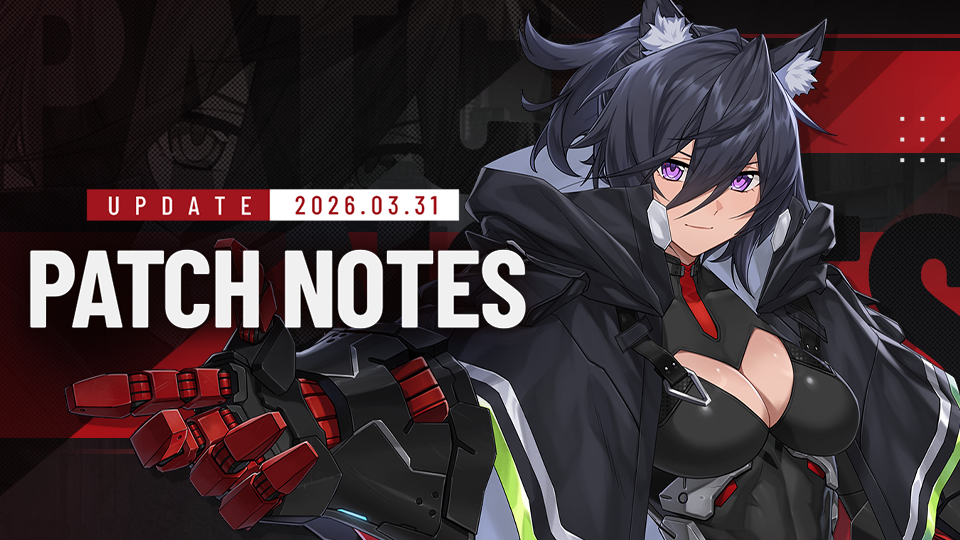 「2026年4月1日 (水) アップデート内容のお知らせ」◈ Update Details▣ Time: March 31, 2026, 20:00 - 22:00 (UTC-5) ▣ Impact: Inaccessibility to the game.▣ Maintenance Compensation: 20,000 Credits, 3 Employment Contracts* Compensation will not be sent to CEOs who have broken the Terms of Service.▣ Please Note- Patch note details may be added or changed during the update.- The schedule may be adjusted depending on the maintenance situation.- Maintenance compensation will be sent to your mailbox if you log in by Apr. 3, 2026, 09:59 (UTC-5)◈ Shop DetailsThis week’s shop update details can be found in the Shop Notice linked below, so please make sure to check it.▷ [March 31 Shop Notice] link 1. Danger Close Venera Season: Nibble1) Danger Close Venera Season: Nibble will begin.▷ Schedule: Mar. 31, 20:00 - Apr. 7, 2026, 14:00 (UTC-5)▷ Settlement Schedule: Apr. 7, 14:00 - Apr. 14, 2026, 14:00 (UTC-5)◆ Battle Condition[Easy][All] units’ Melee DMG -20%[Counter] unit ATK +20% HP +20%[Normal][All] units’ Melee DMG -40%[Counter] unit ATK +20% HP +20%[Hard & Expert][All] units’ Melee DMG -60%[Counter] unit ATK +20% HP +20%◆ Origin- Stability 2. Awakened Exclusive Gear: Kubera Alice Braidwood- Four pieces of exclusive gear for Kubera Alice Braidwood will be added.- Alice Emergency – Hard Mode ACT 1-2 will be added. - Gear can be obtained with a certain probability by clearing Alice Emergency – Hard Mode ACT 1-2.- Kubera Alice Braidwood’s exclusive gear will be added to the Alice Emergency event shop.- You will obtain [Awakened Exclusive Gear Part -Alice Braidwood-] when dismantling the Kubera Alice Braidwood's Awakened exclusive gear.- This item can be used for the Awakened Exclusive Gear Coupon -Alice Braidwood- that will be added to the Alice Emergency event shop.- At +2 enhancement, a Latent Ability will be unlocked.- The Latent Ability is fixed as DMG Taken AMP, but the value is determined at random. 3. Gauntlet ▣ Ranked Battle1) The 2026 Devotion Season skin reward [Hwatu Master Croupier - Freyja Hilde] will be added.◆ Hwatu Master Croupier - Freyja Hilde2) 5 Gauntlet skins will be added to the Gauntlet Season Point : Skin shop.◆ TargetArhat Joo Shiyoon : Dragon Unbound by CloudsReplacer Knight : Knight of the End WorldReplacer Bishop : Dark of the End WorldReplacer Queen : Empress of the End WorldCold Case Horizon : Under arrest, human4. 1. Naielle’s Sword Training 1) Naielle’s Sword Training will begin.- Tap the left or right side of the screen to attack in that direction based on Naielle’s position.- C.O.s will charge toward Naielle from both sides of the screen.- Each time a certain score is reached, a boss Corrupted enemy will appear, capable of withstanding more attacks than normal C.O.s.- If a C.O. reaches Naielle, the game will end.◆ Rewards▼ Schedule- Mar. 31, after the maintenance - Apr. 7, 2026, 20:00 (UTC-5) 5. Challenge Stage: Horizon Finance Office Exclusive Gear - [Payment Ledger] 1) Payment Ledger Challenge Mode will return. ◆ Schedule ▷ Mar. 31, after the maintenance - Apr. 7, 2026, 20:00 (UTC-5)◆ Dungeon Composition- Consists of ACT.1–3 stages.- Each act is divided into three stages, each with a different combat concept.- In Challenge Mode, a new exclusive buff [Horizon Finance Office] will be added, increasing the stats of deployed Horizon Finance Office employees. ◆ Rewards- Clear Challenge Mode to obtain [ Diligent Payer Sticker ], a material required to craft [Horizon Finance Office] Mold. ※ Rewards can only be obtained upon victory.- When clearing Challenge Mode stages, you can obtain both a First Clear Reward and a Medal Completion Reward (for achieving 3 medals), and you can also earn [Diligent Payer Stickers ] as a repeat reward.- The [ Diligent Payer Sticker ] obtained upon victory in Challenge Mode can be used to craft Horizon Finance Office Molds. ※ Challenge Stage RewardsFirst Clear Reward: Diligent Payer StickerMedal Completion Reward: QuartzRepeat Reward (Stage Drop): Diligent Payer Sticker◆ Exclusive Gear- You can craft from [Workshop] > [Craft] > [Exclusive Gear] tab.- Click the Exclusive Gear Mold icon for [Horizon Finance Office] to view the available list.- To craft [Horizon Finance Office] Molds, you will need [Diligent Payer Stickers], [Elite Gear Materials], and [Credits] .- The crafting method is the same as with existing molds, and crafting is completed instantly.- The list of craftable Exclusive Gear is as follows.- When clearing Challenge stages, there is a low chance of obtaining a completed Horizon Finance Office Exclusive Gear.- When dismantling Horizon Finance Office Exclusive Gear, you will receive 50 Diligent Payer Stickers. ※ Exclusive Gear obtained through mold crafting or stage clears is identical to the Exclusive Gear acquired via Counter Case. 6. Unit / Ship Balance Adjustments1) The following units will be adjusted.[Strombringer Jake Walker], [Avenger Mordred], [Lamda Spatari], [Vanguard Exorcist Nicole Primer], [Revenant], [Carlota Martinez], [Nibble], [Credere], [Sword Princess Ais Wallenstein], [Dracasia], [Paradox]7. Unit RecallUnit recall will be available for [Sword Princess Ais Wallenstein], [Dracasia], and [Paradox].◆ Available ScheduleMar. 31, after the maintenance - Apr. 28, 2026, 20:00 (UTC-5)◆ Recall RulesRecalling an eligible unit allows you to select and obtain another unit of your choice. ※ Recalling Sword Princess Ais Wallenstein allows you to select any Awakened unit, excluding collaboration units and Freyja Hilde. ※ Recalling Dracasia or Paradox allows you to select any SSR unit, excluding collaboration units and Minha.All growth materials used on the recalled unit will be refunded.The number of selectable units increases based on the recall unit’s Tactical Update level.If you own multiple copies of the same unit, only one can be recalled.Only units obtained before the recall period are eligible.Titles and trophies related to Awaken