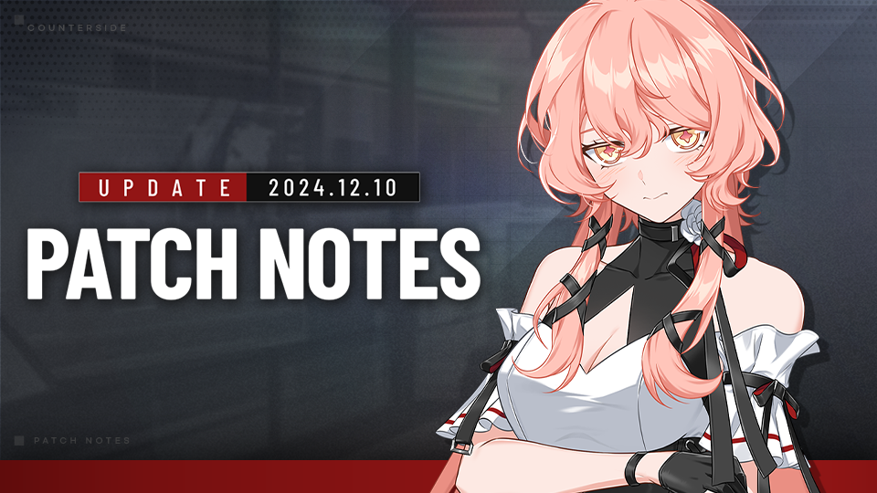 Dear CEOs,Patch Notes for December 10, is now live!Please check it out to avoid missing any vital update details!▼ Maintenance Schedule ( Extended 1 hr ) ▷ December 10, 20:00 - December 11 01:00 (UTC-5)▼ Maintenance Compensation▷ 20,000 Credits▷ 3 Employment Contracts Extended Maintenance Compensation ▷ 60,000 Credits▷ 5,000 Eternium▼ Shop NewsFor this week’s update on shop products, please check the announcement below for more information.Shop Product[LINK]▣ List of Contents (End Time Unaffected) (Added, Dec. 10, 03:27 UTC-5)■ December 11, 2024 at 00:00 UTC-5- Seasonal Event Episode: Starlight Magician- Maze Division Challenge Stage- Normal Recruitment: Edel Meitner, Galahad Roy Burnett, Judy Swift- All Operator Recruit Event- Custom Pickup Event- For the Uncrying Substream Event- Black Friday Weekly Admin Coin BOGO- Black Friday Daily Admin Coin BOGO- Black Friday Relic Binary Package- Black Friday Set Binary Package- Black Friday 3x Quartz Package- Black Friday Fusion Core Package- Black Friday S-Fusion Core Package- Black Friday Employment Package- Black Friday 3-Type Testimonial Package- Black Friday 3-Type Recruitment Package- Black Friday Tuning Binary Package- Black Friday Daily Resource Package- Black Friday Gear Selection Custom Package - Operator Power-up Package- Special Command Module Reset Package - Weekly Resource Package■ December 18, 2024, 00:00 UTC-5 - Event: Black Friday Payback Event- Classified Recruitment: Avenger Mordred, Nehemoth Ray- Raid: Inhibitor Season - Squad Tournament Season 1- 33rd Activity Pledge- Hyper Level-up Package- Hyper Skill Training Package- Hyper Limit Break Package■ February 12, 2025, 00:00, UTC-5- 5th Prestige Service▣ Winter Capital Point Event▼ Winter Capital Point Schedule▷ December 10, After the maintenance ~ December 24, 2024, 20:00 (UTC-5)▣ Dive[ Depth 10, Measured Coordinates 71 - 75 ] ▼ Depth 10 Schedule▷ December 10, After the maintenance - Until further notice ▣ New Counter Pass【 Aura 】A new season of Counter Pass begins. This season is [ Aura ]. ◆ Clearing Counter PassYou can clear the Counter Pass Missions to increase the pass level while acquiring the necessary materials for unit growth.Counter Pass missions are divided into [Daily Mission] and [Weekly Missions].In the [Daily Mission], 10 missions are given daily; you can choose 6 from the 10 to clear the given mission.If the given mission is not up to your taste, you can select the reroll option to renew the mission.You can re-roll the mission for free for the first 3 times, and up to 5 more times afterward by spending credits.If you clear more than 6 missions, you can earn extra pass experience.In the [Weekly Mission], 10 missions are given every Monday at 04:00 UTC-9.You can re-roll the mission for free for the first 3 times, and up to 5 more times afterward by spending credits.You can earn extra pass experience by completing 2nd and 4th-week missions.▼ Counter Pass Schedule ▷ December 10, 20:00 - January 21, 2025, 20:00 (UTC-5) ▣ Returning Employees[ Naielle Bluesteel ]▼ Naielle Bluesteel Pickup Schedule▷ December 10, After the maintenance - December 24, 2024, 20:00 (UTC-5)[ Credere ]▼ Credere Pickup Schedule▷ December 10, After the maintenance - December 24, 2024, 20:00 (UTC-5)[ Other ]▷ Fatima Jamil will be added to the Recruit on Demand. ▣ Arcade Mode[ Starlight Magician ]▼ RulesWeekly Bans & Ups not appliedGear stats not appliedOperators not allowedShip fixed as a Barricade1st slot fixed as Rudolf on Duty - Naielle Bluesteel, 2nd slot fixed as Magical Snow Santa - MIka★Star▼ RewardWin 1 time: [ WAAAAH!!! ] [ Sorry for being so strong ♪ ] text emotesWin 3 times: [ Hyah! ] [ Heh, y-you’re trembling… ] text emotesPlay 5 times: [ Tada! ] [ Whew! ] text emotes▼ Arcade Schedule▷ December 10, After the maintenance - December 16, 2024, 09:59 (UTC-5) ▣ Danger Close[ Moderator Type B ]Battle Condition[Origin]Struggle[Easy]Skill Haste -10%[Delta Seven] unit ATK +100%, HP & Skill Haste +50%[Normal]Skill Haste -20%[Delta Seven] unit ATK +100%, HP & Skill Haste +50%[Hard / Expert]Skill Haste -30%[Delta Seven] unit ATK +100%, HP & Skill Haste +50%[ New High Intensity Plan Options ]1. Moderator Type B’s Pattern Enhanced2. Moderator Type B’s Special Condition Activated▼ Danger Close - Moderator Type B Schedule▷ December 10, 20:00 - December 17, 2024, 14:00 (UTC-5)▼ Danger Close - Moderator Type B Settlement Period▷ December 17, 14:00 - December 24, 2024, 14:00 (UTC-5)▣ Challenge Stage【 Days of Some Mercenaries 】The Days of Some Mercenaries challenge stage will open to create exclusive gear. In the Days of Some Mercenaries challenge, you can get [Messy File Stacks] which you can use to craft Exclusive Gear. Moreover, there is a slight chance for the full exclusive gear to drop after a successful run.▼ Crafting [ Mason Mercenary Office ] MoldTo craft with [ Mason Mercenary Office ] Mold, you need:- 2,500,000 Credits- 400 Messy File Stacks- 600 Advanced Gear materials ▼ Contents of [ Mason Mercenary Office ] Mold* The mold will give a random exclusive gear from these three gears listed above. ▼ Challenge Stage - Days of Some Mercenaries Available Period▷ December 10, After the maintenance - December 17, 2024, 20:00 (UTC-5) ▣ Substream Event【 Starry Night 】[ Ozymandias Action Figure ] will drop 3 times more than normal during the event.▼ [ Starry Night ] Event Schedule▷ December 10, After the maintenance - December 17, 2024, 20:00 (UTC-5)▣ Punch-In Event[ Anastasia’s Special Supplies ]▼ [ Anastasia’s Special Supplies ] Event Schedule▷ December 10, After the maintenance - December 24, 2024, 20:00 (UTC-5) ▣ Improvements and Changes1. [Abandon Ship] is added to the Seasonal Record.2. Supply Operation Revamp, Today’s Deal Item Overhaul, Simplification of Material Items, and Permanent Daily Resource Challenge will proceed during the update.[ Permanent Daily Resource C