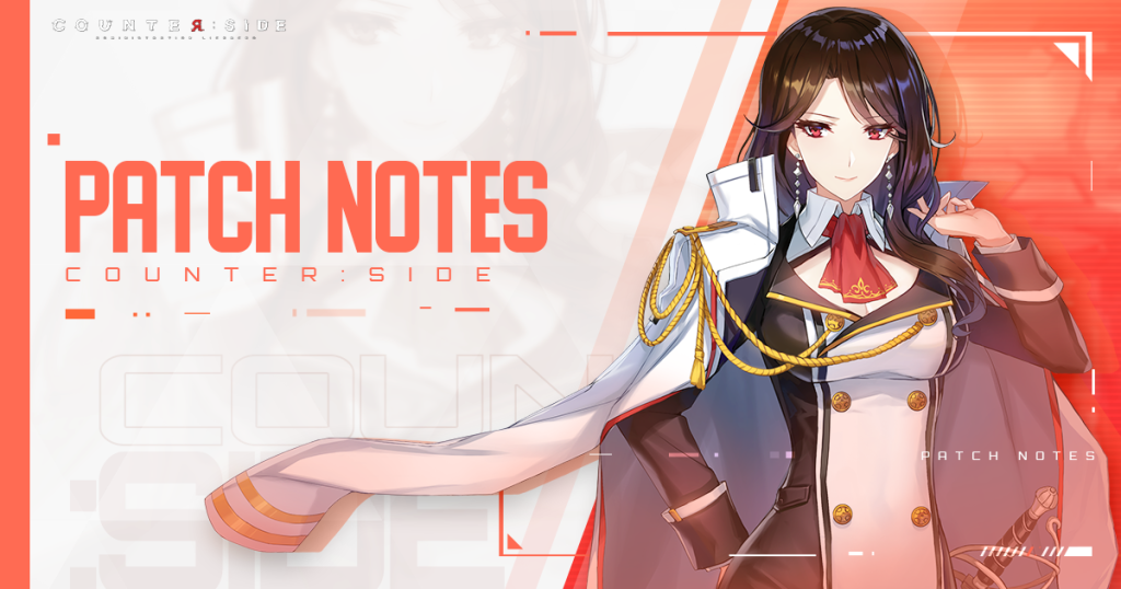 Update details for the 6th of October are listed below.See you on the CounterSide! *Patch Size: Approximately 157 MB ▼ Maintenance Schedule: ▷ 6th of October, 2022 16:00 ~ 17:30 (UTC+9)▷ 6th of October, 2022 02:00 ~ 03:30 (UTC-5) ▣ Awakened Unit – Six Wings Na Yubin <iframe title="YouTube video player" width="1024" height="880" frameborder="0" allowfullscreen=""></iframe> ▼ Six Wings Na Yubin Banner Period: ▷ 6th of October, 2022 16:00 ~ 20th of October, 2022, 04:00 (UTC+9)▷ 6th of October, 2022, 02:00 ~ 19th of October, 2022, 14:00 (UTC-5) ▣ Employee Recruitment Probability UP! 【 Ifrit 】 ▼ Ifrit Favored Banner Period: ▷ 6th of October, 2022 16:00 ~ 20th of October, 2022, 04:00 (UTC+9)▷ 6th of October, 2022, 02:00 ~ 19th of October, 2022, 14:00 (UTC-5) 【 Harab 】 ▼ Harab Favored Banner Period: ▷ 6th of October, 2022 16:00 ~ 20th of October, 2022, 04:00 (UTC+9)▷ 6th of October, 2022 02:00 ~ 19th of October, 2022, 14:00 (UTC-5) ▣ New Operator – Mansion Master ▼ Mansion Master Banner Period: ▷ 6th of October, 2022 16:00 ~ 27th of October, 2022, 04:00 (UTC+9)▷ 6th of October, 2022 02:00 ~ 26th of October, 2022, 14:00 (UTC-5) ▣ Lone Lee’s Fateful Circuit Link Lone Lee’s Fateful Circuit Link will begin after the maintenance on the 6th of October maintenance! Complete the missions to get handsome rewards and limited Lone Lee’s swimsuit skin! ▼ Lone Lee’s Fateful Summer Circuit Link Period: ▷ 6th of October, 2022 16:00 ~ 27th of October, 2022, 04:00 (UTC+9)▷ 6th of October, 2022, 02:00 ~ 26th of October, 2022, 14:00 (UTC-5) ▣ New Challenge Stage – The ALT Squad Is Here A new challenge stage to create exclusive gears for ALT Squad employees will be opened after the maintenance on the 6th of October 2022. In The ALT Squad Is Here challenge, you can get [Dark Network Request Token] which you can use to craft Exclusive Gear. Moreover, there is a small chance for the whole exclusive gear to drop after a successful run. ▼ Crafting [ALT Squad] Mold To craft with [ALT Squad] Mold, you need 2,500,000 Credits, 400 Dark Network Request Tokens, and 600 Advanced Gear materials. ▼ Contents of [ALT Squad] Mold ▷ T6 Hound Fangs (Eugene only) ▷ T6 Leader’s Duty (Seo Yoon only) (Updated) ▷ T6 Reliable Messenger (Xiao Lin only) ▷ T6 Fairy’s Infinite Ammo (Kim Sobin only) The mold will give a random exclusive gear from these four gears listed above. ▼ Challenge Stage – The ALT Squad Is Here Period: ▷ 6th of October, 2022 16:00 ~ 20th of October, 2022, 04:00 (UTC+9)▷ 6th of October, 2022 02:00 ~ 19th of October, 2022, 14:00 (UTC-5) ▣ Danger Close ◆ Danger Close Regular-Season 5 ◆ Danger Close season 5 is going to open after the maintenance on the 6th of October, 2022! Moderator Type A & B will appear during season 5. Each boss has the following buffs and debuffs, so please check it out! ▼ Danger Close Season 5 Elimination Period: ▷ 6th of October, 2022 16:00 ~ 13th of October, 2022, 04:00 (UTC+9)▷ 6th of October, 2022 02:00 ~ 12th of October, 2022, 14:00 (UTC-5) ▣ Gear Enhancement Season Special Punch-In A gear enhancement season has arrived! To help our CEOs on enhancing gears, a special punch-in will begin! ▼ Gear Enhancement Season Special Punch-In Period: ▷ 6th of October, 2022 16:00 ~ 26th of October, 2022, 04:00 (UTC+9)▷ 6th of October, 2022, 02:00 ~ 25th of October, 2022, 14:00 (UTC-5) ▣ Employee Pool The following employee has been added to Operator Recruit on Demand pool. ▷ Operator Replacer King ▣ Other ▷ Some of the package components have been changed. Detailed information can be found here [LINK] ▣ Website ▷ Main top menu bar has been updated. ★ Please note that any unfinished battles will be closed once the maintenance begins.★ The guest accounts may have log-in issues or get deleted after the update. Therefore, it is highly recommended to link the guest account to any provided SNS account. Check current known issues Check FAQ Click the link above to view the known issues that are under investigation by the developers or the possible solution in the lower parts of the notice. Click the FAQ for questions that may be answered already We are currently working to resolve these issues, and we will update CEOs through the linked page as soon as an issue is resolved. Thank you
