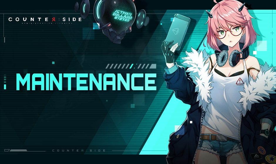 Maintenance on the 29th of September is finished at 17:30 (UTC+9). On the 29th of September, Counterside will be placed under maintenance to ensure manageable levels of CSE for every CEO. All CEOs are advised to relax or attend to other procrastinated paperwork in the meantime. [29th of September (Thu) Maintenance Information] ▼ Maintenance Schedule ▷ 29th of September, 2022 15:00 ~ 18:30 (UTC+9)▷ 29th of September, 2022 01:00 ~ 04:30 (UTC-5) ▼ Maintenance compensation ▷ 20,000 x Credits ▷ 3 x Employment Contracts ※ Additional Administration Notes The game will be inaccessible during the Maintenance Schedule. We sincerely apologize for the inconvenience brought by this maintenance. The Administration will always do its best to provide CEOs with the necessary information for their next dive into the Counterside. Thank you. 【Play on STEAM】[LINK]【Play on Mobile】[LINK]【Official Community】Official Discord: [LINK]Official Facebook: [LINK]Official Subreddit: [LINK]Official Twitter: [LINK]Official YouTube: [LINK]