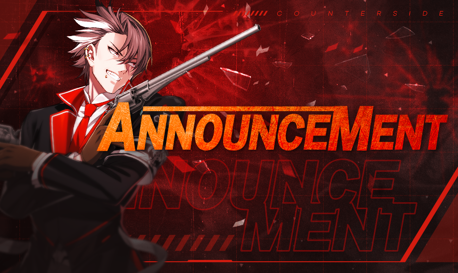 Dear CEOs, As announced before in the CounterSide Showcase NEW ORIGIN, Danger Close will only have a single boss after the update. As such, the value of duplicate operators has dropped significantly. To compensate for the issue, we are going to accept applications for CEOs to apply for completely different operators to the same value, in the main skill level and the Side Skill level. Now, this will only apply to CEOs who have raised operators to the same operator in the main skill level and the Side Skill level. (For example, having two Kim Hanas with the same operator main and Side Skill levels) Therefore, if the CEOs have the same operators, but different skills and/or levels, then the exchange won’t apply. We are sorry for the inconvenience because we could not think about this possibility. More detailed information on the operator exchange is as below. ◈ Application Period February 10, 2023 – February 28, 2023, 00:00 UTC+9 March 17, 2023, 00:00 UTC+9 (Extended) * The application period may change and we will notify you if it does. ◈ Requirement – Has the duplicate operators with the sum of their Side Skill equal to or more than 15. * The duplicate operators must be SSR rarity. (added) ◈ Exchange Method – Will recollect one of the operators and send an operator of the same “level specification” as the one that was recollected. ※ CEOs can also exchange for operators who have a different Side Skill. ※ You can select any operator from the two to exchange for the new one. (ex. if you have applied for level 11 and level 5 Kim Hana, you can select any of the two) ◈ List of Exchangeable Operators: – Lee Sooyeon – Anastasia Chernova – Lena Mackenzie – Replacer King – Moneca – Serina Crew – Rachel Dodds – Mansion Master – Momo – Chloe Starseeker – Operator Sigma – Kim Hana – Other operators that may be featured during the application period ◈ How to Apply – Official Website’s 1:1 Inquiry [LINK] ◈ Required Attachments – A screenshot of your [ Settings > Account ] Page – A screenshot of your operator management screen of who you are going to apply for the exchange. – The type of operator that you want to exchange with detailed information (example: Operator Sigma, Level 75, Command level 2, Attack Speed level 11) – The operator information that you are exchanging for. (example: Kim Hana, Level 75, Command level 2, Attack Speed level 11) ◈ Number of possible Exchange – 2 times per person (based on your Business Registration Number) ◈ Actual Compensation Period ▷ After February 22nd, 2023 ~ Until Completion ※ During the compensation operation, the CEOs may be temporarily restricted to access the game. ◈ Notes – If the information and the actual state of the operators differ, then the exchange may not be possible, Therefore, after the application, do not level or change anything for the applicable operators. – The operators will be sent out on a first-come first serve basis. – To make sure the operation runs smoothly, the CEOs may be temporarily restricted from accessing the game. – The level progression will not transfer. (Example level 75, 70% progression → level 75, 0% progression to 76.) – Once the operator is exchanged as compensation, then the exchanged operator does not apply to exchange for the second time. – If the submitted document is incomplete, then the compensation will not be sent.