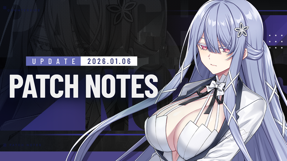 「2026年1月7日 (水) アップデート内容のお知らせ」◈ Update Details▣ Time: January 6, 2026, 20:00 - 22:00 (UTC-5) ▣ Impact: Inaccessibility to the game.▣ Maintenance Compensation: 20,000 Credits, 3 Employment Contracts* Compensation will not be sent to CEOs who have broken the Terms of Service.▣ Please Note- Patch note details may be added or changed during the update.- The schedule may be adjusted depending on the maintenance situation. - Maintenance compensation will be sent to your mailbox if you log in by Jan 9 , 2026, 09:59 (UTC-5) ◈ Shop DetailsThis week’s shop update details can be found in the Shop Notice linked below, so please make sure to check it.▷ [January 6 Shop Notice] link1. Awakened Exclusive Gear: Six Wings Swan Claire- Four pieces of exclusive gear for Six Wings Swan Claire will be added.- The World Behind the Stage – Hard Mode ACT 1-2 will be added. - Gear can be obtained with a certain probability by clearing The World Behind the Stage – Hard Mode ACT 1-2.- Six Wings Swan Claire’s exclusive gear will be added to The World Behind the Stage event shop.- You will obtain [Awakened Exclusive Gear Part -Swan Claire-] when dismantling the Six Wings Swan Claire's Awakened exclusive gear.- This item can be used for the Awakened Exclusive Gear Coupon -Swan Claire- that will be added to The World Behind the Stage event shop.- At +2 enhancement, a Latent Ability will be unlocked.- The Latent Ability is fixed as ASPD, but the value is determined at random.2. Danger Close Venera Season: Yamata no Orochi1) Danger Close Venera Season: Yamata no Orochi will begin.▷ Schedule: Jan. 6, after the maintenance - Jan. 13 2026, 14:00 (UTC-5)▷ Settlement Schedule: Jan. 13, 14:00 - Jan. 20, 2026, 14:00 (UTC-5)◆ Battle Condition[Easy][Counter] unit HP -5%/sec[Mech, Soldier] unit ATK +50%, HP +20%[Normal][Counter] unit HP -10%/sec[Mech, Soldier] unit ATK +50%, HP +20%[Hard & Expert][Counter] unit HP -15%/sec[Mech, Soldier] unit ATK +50%, HP +20%◆ Origin- Change3. Challenge Stage: Knights of Redemption Exclusive Gear - [Nights of Redemption]1) The Night of Redemption Challenge Mode will return. ◆ Schedule ▷ Jan. 6, 2026, after the maintenance - Jan. 13, 2026, 20:00 (UTC-5)◆ Dungeon Composition- Consists of ACT.1–3 stages.- Each act is divided into three stages, each with a different combat concept.- In Challenge Mode, a new exclusive buff [Night of Redemption] will be added, increasing the stats of deployed Knight of Redemption employees. ◆ Rewards- Clear Challenge Mode to obtain [Knights of Redemption Medal], a material required to craft [Knight of Redemption] Mold. ※ Rewards can only be obtained upon victory.- When clearing Challenge Mode stages, you can obtain both a First Clear Reward and a Medal Completion Reward (for achieving 3 medals), and you can also earn [Knights of Redemption Medal] as repeat rewards.- The [Knights of Redemption Medal] obtained upon victory in Challenge Mode can be used to craft Knight of Redemption Molds. ※ Challenge Stage RewardsFirst Clear Reward: Knights of Redemption MedalMedal Completion Reward: QuartzRepeat Reward (Stage Drop): Knights of Redemption Medal◆ Exclusive Gear- You can craft from [Workshop] > [Craft] > [Exclusive Gear] tab.- Click the Exclusive Gear Mold icon for [Knights of Redemption] to view the available list.- To craft [Knights of Redemption] Molds, you will need [Credits], [Knights of Redemption Medal], and [Elite Gear Materials].- The crafting method is the same as with existing molds, and crafting is completed instantly.- The list of craftable Exclusive Gear is as follows.- When clearing Challenge stages, there is a low chance of obtaining a completed Knights of Redemption Exclusive Gear.- When dismantling Knights of Redemption Exclusive Gear, you will receive 50 Knights of Redemption Medals. ※ Exclusive Gear obtained through mold crafting or stage clears is identical to the Exclusive Gear acquired via Counter Case.4. Unit Balance Adjustment1) Balance for [Griffin Rider Christina Brecht], [Ace of Wings Lee Sooyeon], [Six Wings Amy Firstwing], [Galahad Roy Burnett], [Sonya Bill], [Levia Thanis], [Christina Brecht], [Aura], [Space Cat Fellicette], [Free Agent Seo Yoon], and ship, [Enterprise] will be adjusted.2) Unit tags for certain employees will be changed or added. ■ Griffin Rider Christina BrechtAdded: dpl_resource_refund ■ Six Wings Amy FirstwingBefore: Insta-KillAfter: dmg_prop_enemy_hp ■ Galahad Roy BurnettBefore: dmg_res_suppressionAfter: Increased DMG Taken ■ Sonya BillBefore: incoming_heal_decAfter: Healing Reflux ■ Free Agent Seo YoonBefore: Insta-KillAfter: dmg_prop_enemy_hp■ Levia ThanisAdded: Immune to Stun 5. Gear Enhancement Season1) Gear Enhancement Season Punch-In will start. ◆ Schedule- Jan. 6, after the maintenance - Jan. 26, 2026, 20:00 (UTC-5)※ During the event period, you can participate in a total of 10 days of attendance punch-ins.※ Attendance punch-ins reset every day at 14:00 (UTC-5).※ Consecutive punch-ins are not required—simply punch in for the total number of days within the period to receive all rewards.[ List of Rewards ]6. Recruitment1. Four Classified Recruitment Chance UP will return.- Recruitment Schedule: Jan. 6, after the maintenance - Jan. 20, 2026, 20:00 (UTC-5)- Ensured Recruitment Count: 150 times- One employee is ensured to appear within the 150 recruitments.- Once an Ensured Employee is obtained, the counter will be reset.- Target employee: [Six Wings Swan Claire], [Personification of Sephira Noelle Wright], [Kostroma Mavka], [Arhat Joo Shiyoon] 2. Three Normal Recruitment Chance UP will return.- Recruitment Schedule: Jan. 6, after the maintenance - Jan. 20, 2026, 20:00 (UTC-5)- Ensured Recruitment Count: 150 times- One employee is ensured to appear within the 150 recruitments.- Once an Ensured Employee is obtained, the counter will be reset.- Target employee: [Lee Yuri], [Lee Yumi], [Spira]3. Three Operator Recrui