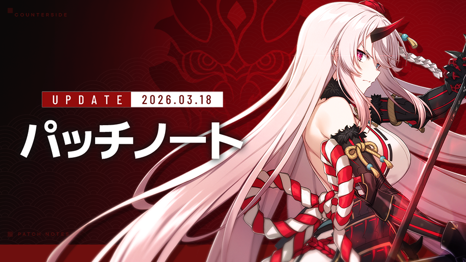 日頃より『カウンターサイド』をご愛顧いただき、誠にありがとうございます。3/19 (木) 11:30よりサーバーパッチを実施いたします。ご案内する時間に、一時的なサーバー障害が発生する場合がございます。詳細は下記の内容をご確認ください。3/19 (木) サーバーパッチ▣時間:3/19 (木) 11:30 ~ 11:40▣サーバーパッチ中はゲームプレイの障害が発生する場合がございます。▣再ログインするとパッチダウンロードが開始されます。▣内容- メインストリームEP.8「嵐を呼ぶ者」ハード1-3ステージの初回クリア報酬から「融合コア」が除外されます。※ 報酬の重複獲得を防ぐための臨時措置として、本ステージの初回クリア報酬「融合コア」は獲得できないように変更される予定です。[注意事項]– サーバーパッチの状況により、内容が追加/変更となる場合がございます。– 変更事項がある場合、順次お知らせに追加案内をする予定です。– サーバパッチの適用には、アプリの再起動が必要となります。– 再ログインする際にパッチダウンロードをする必要があります。ダウンロードをする時、データを使用する為、Wi-Fi環境でダウンロードをおすすめします。