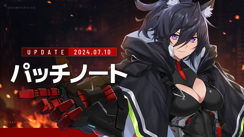 日頃より『カウンターサイド』をご愛顧いただき、誠にありがとうございます。 7/10 (水)アップデートの内容をご案内いたしますので、詳細は下記にてご確認ください。◈ メンテナンス内容▣ 実施時間: 7/10 (水) 14:00 ~ 16:00▣メンテナンス中はゲームに接続することができませんので、ご注意ください。▣メンテナンス報酬: クレジット x 20,000、採用契約書 x 3▣ 注意事項– アップデート中、メンテナンス内容は、追加/変更となる場合がございます。– メンテナンス状況によって日程が変更となる場合がございます。※ クリスティーナ・ブレヒト:グリフィンライダー、ジュディ・スウィフトの日本語ボイスが追加される場合、アップデートのお知らせなどで改めてご案内いたします。◈ ショップ今週のショップアップデートの詳細内容は、下記の商品入荷のお知らせでご確認いただけます。[商品入荷のお知らせ]▣ 新規サブストリーム◆アリスエマージェンシー◆ [アリスエマージェンシー]サブストリームが2024.07.10 (水)メンテナンス終了後、開催されます。▼ サブストリームの開催期間▷ 2024.07.10 (水) メンテナンス終了後 ~ 別途のお知らせまで◆アリスエマージェンシーミッション◆ 「アリスエマージェンシー」サブストリームに関するミッションが2024.07.10(水)メンテナンス終了後から始まります。▼ 開催期間▷ 2024.07.10 (水) メンテナンス終了後 ~ 2024.07.24 14:00◆通貨ドロップボーナスイベント◆「アリスエマージェンシー」の通貨ドロップボーナスイベントが開催されます。▼ 開催期間▷ 2024.07.10 (水) メンテナンス終了後 ~ 2024.07.24 14:00◆アリスエマージェンシーショップ◆ [アリスエマージェンシー] ショップは、2024.07.10 (水)メンテナンス終了後からご利用いただけます。▼ 開催期間▷ 2024.07.10 (水) メンテナンス終了後 ~ 別途のお知らせまで▣ 機密採用登場!新規覚醒ユニット -【アリス・ブレイドウッド:クベーラ】 ▼ アリス・ブレイドウッド:クベーラの採用期間 :▷ 2024.07.10 (水) メンテナンス終了後 ~ 2024.07.24 14:00◆アリス・ブレイドウッド:クベーラ契約ミッション◆ ▼ 開催期間▷ 2024.07.10 (水) メンテナンス終了後 ~ 2024.08.07 14:00 ▣ カウンターパス 新規カウンターパスが追加されます。スペシャルプランを購入すると新規社員「ジュディ・スウィフト」を獲得できます。 ▣ 通年採用 通年採用のリストに以下の社員が追加されます。▷ イェニカ▣ アーケード1) ガントレット:アーケード「アリス・ブレイドウッド:クベーラ」が開催されます。 ◆ 開催期間- 2024.07.10 (水) メンテナンス終了後 ~ 2024.07.16 23:59◆ 戦闘環境1) アリス・ブレイドウッド変更点- 強化状態中、敵との距離が遠くなると特殊スキルをクールタイムとは関係なく、出撃につき最大2回まで再発動- 強化状態中、攻撃力 30%増加 -> 50%増加に変更 - ブリトラレリック装備補正値適用◆ ルール- 装備能力値適用- BAN&UP適用- 1番目のスロットには「アリス・ブレイドウッド:クベーラ」が配置されます。◆ 報酬- 新規感情表現を獲得できます。▣ ラスト・スタンド 1) ラスト・スタンドが開催されます。 - ラスト・スタンドはステージの制限時間がなく、自分の艦船が破壊されるまで戦闘します。- ステージの段階に応じて、敵が強力になります。- ラスト・スタンドは今後復刻される可能性があります。◆ 開催期間- 2024.07.10 (水) メンテナンス終了後 ~ 2023.07.17 (水) 14:00◆ 決算期間- 2024.07.17 (水) 14:00 ~ 2024.07.24 (水) 14:00◆ ルール- 定期的に強力な敵が現れます。- モンスターを退治すると、退治点数を得ることができます。- 退治点数が同点の場合、先にランクに登録されたユーザーが上位順位として記録されます。- 硬直免疫付与:戦闘が始まって2分が経った時点から、すべての敵ユニットに硬直免疫が付与されます。- 回復弱化(1回目):戦闘が始まって2分30秒が経った時点から、すべてのユニットの回復が60%弱化します。 - 攻撃速度増加:戦闘が始まって3分が経った時点から、敵ユニットの攻撃速度が100%増加します。- 回復弱化(2回目):戦闘が始まって3分30秒が経った時点から、すべてのユニットの回復が80%弱化します。- ダメージ増加:戦闘が始まって4分が経った時点から、敵ユニットの与えるダメージが100%増加します。※ サポーターの治癒能力がガントレットと同様に適用されます。◆ 戦闘環境- アリス・ブレイドウッド:クベーラの攻撃力 500%増加- レンジャークラスの攻撃力 500%増加- 小隊出撃コスト32以下▣ 激戦支援 1) 激戦支援 - 根源シーズン:モデレーターTYPE Aが開催されます。▷ 殲滅期間 : 2024.07.10 (水)メンテナンス終了後 ~ 2024.07.17 (水) 04:00▷ 決算期間 : 2024.07.17 (水) 04:00 ~ 2024.07.24 (水) 04:00◆ 戦闘環境- Easy: [メイズ戦隊] ユニットの攻撃力100% HPおよびスキルチャージ速度50%増加、[地上]ユニットの命中30%減少- Normal: [メイズ戦隊] ユニットの攻撃力100% HPおよびスキルチャージ速度50%増加、[地上]ユニットの命中60%減少- Hard&Expert : [メイズ戦隊] ユニットの攻撃力100% HPおよびスキルチ