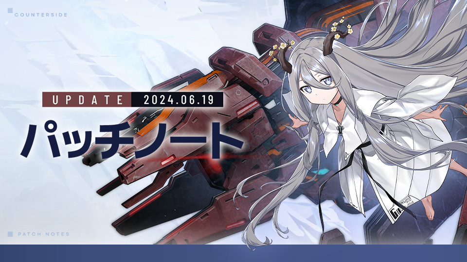 日頃より『カウンターサイド』をご愛顧いただき、誠にありがとうございます。 6/19(水)アップデートの内容をご案内いたしますので、詳細は下記にてご確認ください。◈ アップデート内容▣ 実施時間: 6/19 (水) 14:10▣メンテナンスなしで内容がアップデートされます。▣ 注意事項– アップデート内容は、追加/変更となる場合がございます。– アップデート日程が変更となる場合がございます。◈ ショップ今週のショップアップデートの詳細内容は、下記の商品入荷のお知らせでご確認いただけます。[商品入荷のお知らせ]▣ 新規サブストリーム◆フォールン・フロア◆ [フォールン・フロア]サブストリームが2024.06.19 (水)14:10から開催されます。▼ サブストリームの開催期間▷ 2024.06.19 (水) 14:10 ~ 別途のお知らせまで◆フォールン・フロアミッション◆ 「フォールン・フロア」サブストリームに関するミッションが2024.06.19 (水)14:10から始まります。▼ 開催期間▷ 2024.06.19 (水) 14:10 ~ 2024.07.03 14:00◆通貨ドロップボーナスイベント◆「フォールン・フロア」の通貨ドロップボーナスイベントが開催されます。▼ 開催期間▷ 2024.06.19 (水) 14:10 ~ 2024.07.03 14:00◆フォールン・フロアショップ◆ [フォールン・フロア] ショップは、2024.06.19 (水)14:10からご利用いただけます。▼ 開催期間▷ 2024.06.19 (水) 14:10 ~ 別途のお知らせまで▣ 機密採用登場!新規覚醒社員 -【シェパード&ラッチャー:精霊と野獣】 ▼ シェパード&ラッチャー:精霊と野獣の採用期間 :▷ 2024.06.19 14:10 ~ 2024.07.03 14:00 ◆シェパード&ラッチャー:精霊と野獣契約ミッション◆ ▼ 開催期間▷ 2024.06.19 (水) 14:10 ~ 2024.07.17 14:00 ▣ オペレーター採用確率UP!【シソップ】 ▼ シソップの採用期間:▷ 2024.06.19 (水) 14:10 ~ 2024.07.03 14:00【マンションマスター】 ▼ マンションマスターの採用期間:▷ 2024.06.19 (水) 14:10 ~ 2024.07.03 14:00▣ ガントレット1) ガントレット:アーケード「GUILTY GEAR -STRIVE-」が開催されます。 ◆ 開催期間- 2024.06.19 (水) 04:00 ~ 2024.07.02 23:59◆ 戦闘環境- ギルティギアユニットのスキルチャージ速度200%増加- 出撃資源供給量 -30%- 残り時間1分30秒から与えるダメージ +30%- 残り時間1分から与えるダメージ +60%◆ ルール- BAN&UP未適用- 装備能力値未適用- オペレーター使用不可- 同時出撃最大2人- LV.60「バリケード」が艦船として提供されます。- 最大5体の社員を編成でき、1番目のスロットには「GUILTY GEAR -STRIVE-」コラボ社員が配置されます。◆ 報酬- アーケード1回勝利:GUILTY GEAR -STRIVE-- アーケード2回勝利:Heaven or Hell- アーケード3回勝利:LET'S ROCK!- アーケード5回プレイ:これはただのゲームじゃない!▣ イベント1) サブストリームエピソード「民兵隊」の通貨ドロップボーナスイベントが開催されます。 ▼ 開催期間:▷ 2024.06.19 (水) 14:10 ~ 2024.06.26 14:00▣ レイド1) レイドボス「クラーケン」がシーズン期間中に登場します。- シーズン期間:2024.06.19 14:10 ~ 2024.07.03 (水) 14:00※ 「クラーケン」 シーズンローテーションと功労トロフィー交換所の報酬が更新されます。※ 今シーズンに出現したレイドボスのみ、レイドポイントが支給されます。(前シーズンに出現したレイドボスを退治した場合は、退治報酬のみの支給となります)2) レイドボス「クラーケン」に根源性「安定」が付与されます。▣ 出勤チェック◈ ユニット成長シーズン ユニット成長シーズンが2024.06.19 (水) 14:10から開催されます。(2024.06.19 15:35更新)▼ 開催期間: ▷ 2024.06.19 (水) 14:10 ~ 2024.03.12 14:00▣ 専用装備チャレンジ - 禁じられた知識 ESPRの専用装備を製作するためのチャレンジが2024.06.19 (水) 14:10から開催されます。専用装備チャレンジ「禁じられた知識」をクリアすると、ESPR専用装備の制作材料「知識が込められた瓶」と一定の確率でESPR専用装備を獲得できます。[知識が込められた瓶] ▼ 専用装備製作専用装備の制作に必要な材料は以下となります。▷ クレジット x 2,500,000▷ 知識が込められた瓶 x 400 ▷ 高級装備素材 x 600▼ 製作可能な専用装備リスト ▼ 開催期間▷ 2024.06.19 (水) 14:10 ~ 2024.06.26 14:00今回のアップデート内容のお知らせは以上となります。今後とも「カウンターサイド」をよろしくお願いいたします。
