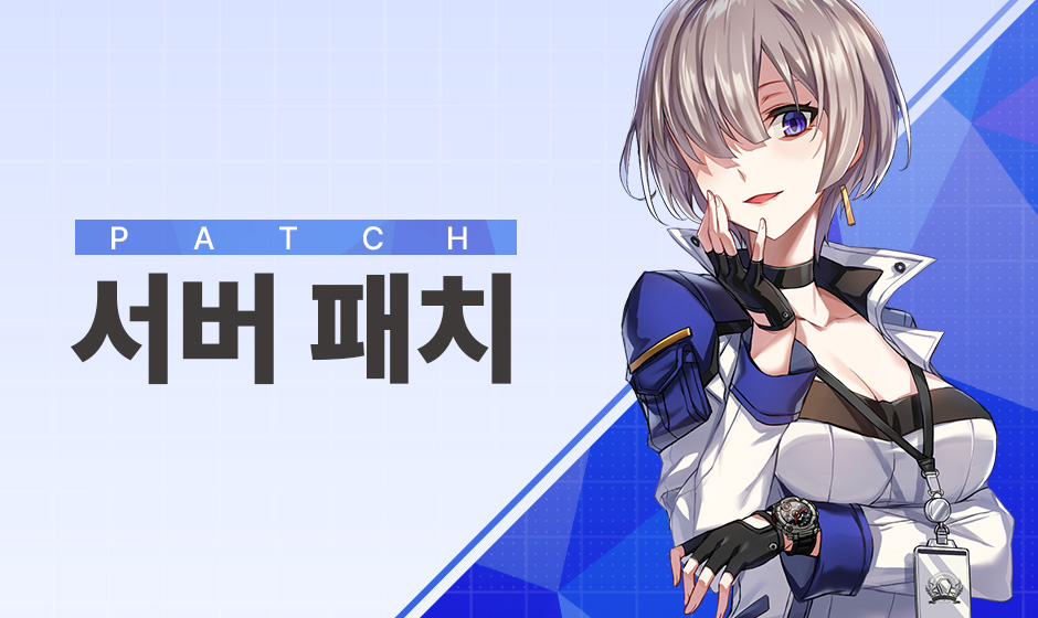 안녕하세요, 사장님.카운터사이드 운영팀입니다.10/26(목) 18시 무점검 서버 패치가 진행됩니다. 패치 진행 중 게임 이용 중 일시적인 순단 현상이 발생할 수 있습니다. 현재 접속 중인 사장님은 게임을 종료하신 뒤 재접속하시면 업데이트를 받으실 수 있습니다.자세한 내용은 아래를 참고하시어 게임 이용에 불편이 없으시기 바랍니다.[10/26(목) 무점검 서버 패치 안내]▣ 시간: 10/26(목) 18시 ~ 18시 10분▣ 영향: 패치 중 일시적인 순단 현상이 발생할 수 있습니다.▣ 내용- 전술 업데이트 관련 칭호 획득 조건을 만족했지만, 칭호를 획득할 수 없는 오류 수정[유의사항]- 패치 상황에 따라 일정이 변경될 수 있으며, 변동 사항이 있는 경우 해당 공지로 추가 안내를 드리겠습니다.- 재접속 시 패치 다운로드를 위한 데이터 사용이 필요할 수 있으니 Wi-Fi 이용을 권해드립니다.