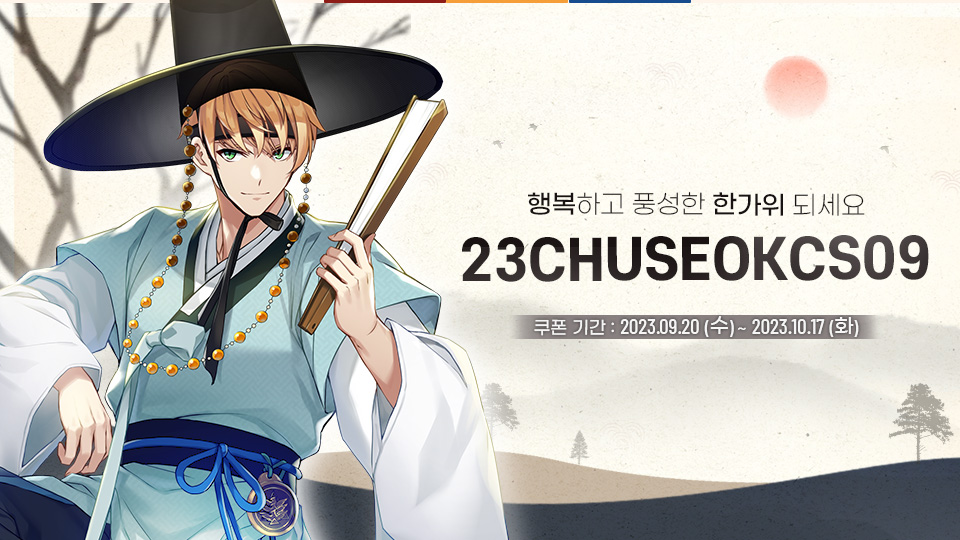 안녕하세요 사장님.사장님들께서 기다리셨던 민족의 명절 추석이 찾아왔습니다!특별 쿠폰과 함께 풍성한 한가위 보내시기 바라요!▼ 쿠폰 코드▷ 23CHUSEOKCS09▼ 쿠폰 보상▷ 500 쿼츠▷ 융합핵 5개▼ 유효 기간▷ 2023.10.17(화) 23:59까지
