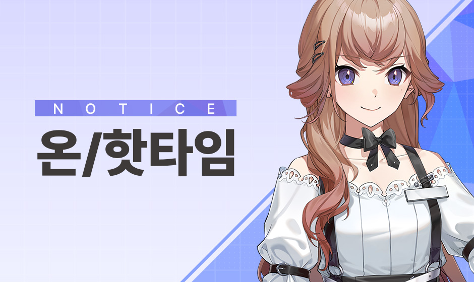 안녕하세요, 사장님.시크릿 서비스 리코리스 출시 기념 온/핫타임 이벤트를 안내해 드립니다.자세한 사항을 아래의 내용을 참고해 주세요.◆ 온타임 이벤트 기간▷ 2023.10.12(목) ~ 2023.10.17(화)◆ 온타임 이벤트 선물▷ 5,000 이터니움▷ 함선 고급 자재 50개▷ 특별 함선 설계도면 5개◆ 온타임 이벤트 참여 방법- 매일 접속 시 우편함으로 이벤트 선물이 지급됩니다.◆ 핫타임 이벤트 효과1) 2023.10.11(수) 00:00 ~ 2023.10.14(토) 23:59▷ 이터니움 소모량 감소 -20%2) 2023.10.15(일) 00:00 ~ 2023.10.17(화) 23:59▷ 연봉협상 소모 크레딧 감소 -20%[유의사항]- 온타임 이벤트 선물은 매일 1회만 받을 수 있습니다.- 온타임 이벤트 선물은 유효기간 종료 시 삭제되니 기간 내에 수령하시길 권해드립니다.- 적용 중인 핫타임 효과는 로비 화면의 닉네임 우측 핫타임 버프 이미지를 클릭하시면 확인하실 수 있습니다.